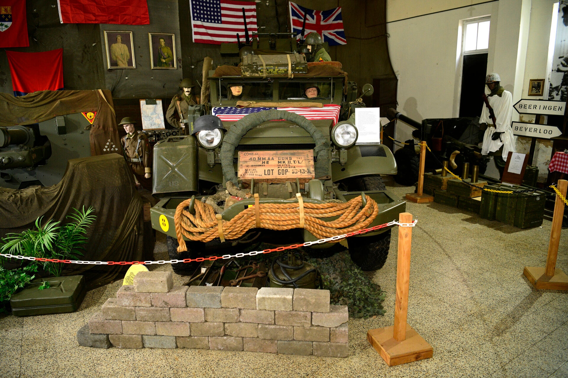 elevenis in een een bunker en meerijden met jeeps.
